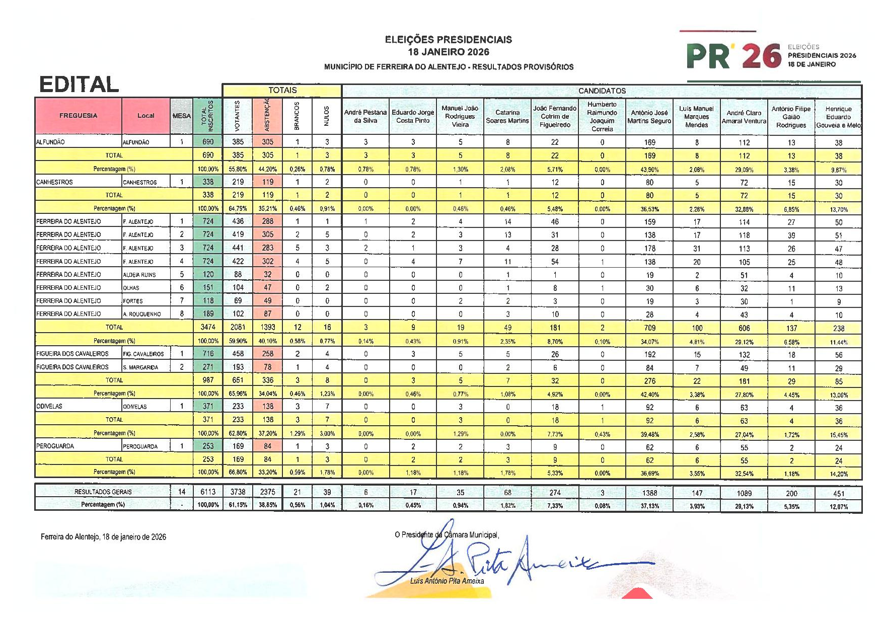 Home / (Português) Notícias / (Português) Eleições Presidenciais 2026 – Resultados no concelho de Ferreira do Alentejo